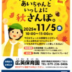 広英保育園 乳幼児子育て支援プログラム「あそびランド」のお知らせです。 あいちゃんといっしょに 秋さんぽ。 ※状況によっ […]