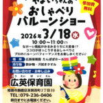 広英保育園 乳幼児子育て支援プログラム「あそびランド」のお知らせです。 やよいちゃんの おしゃべり バルーンショー ※状 […]